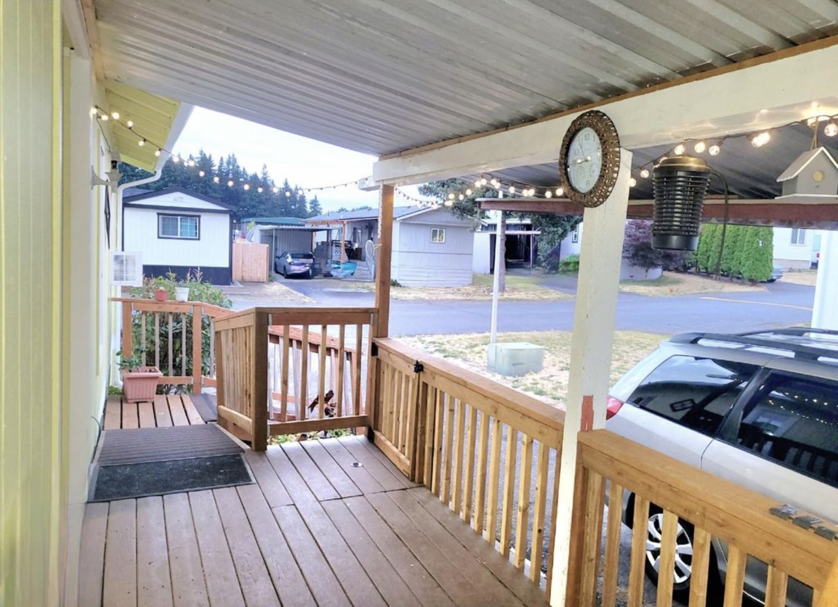 Step outside to one of the largest yards in the park, backing up to an open field for an extra-large outdoor feel. Enjoy relaxing on the porch, gardening, or hosting gatherings. Extra parking and outdoor storage units makes this home even more convenient.