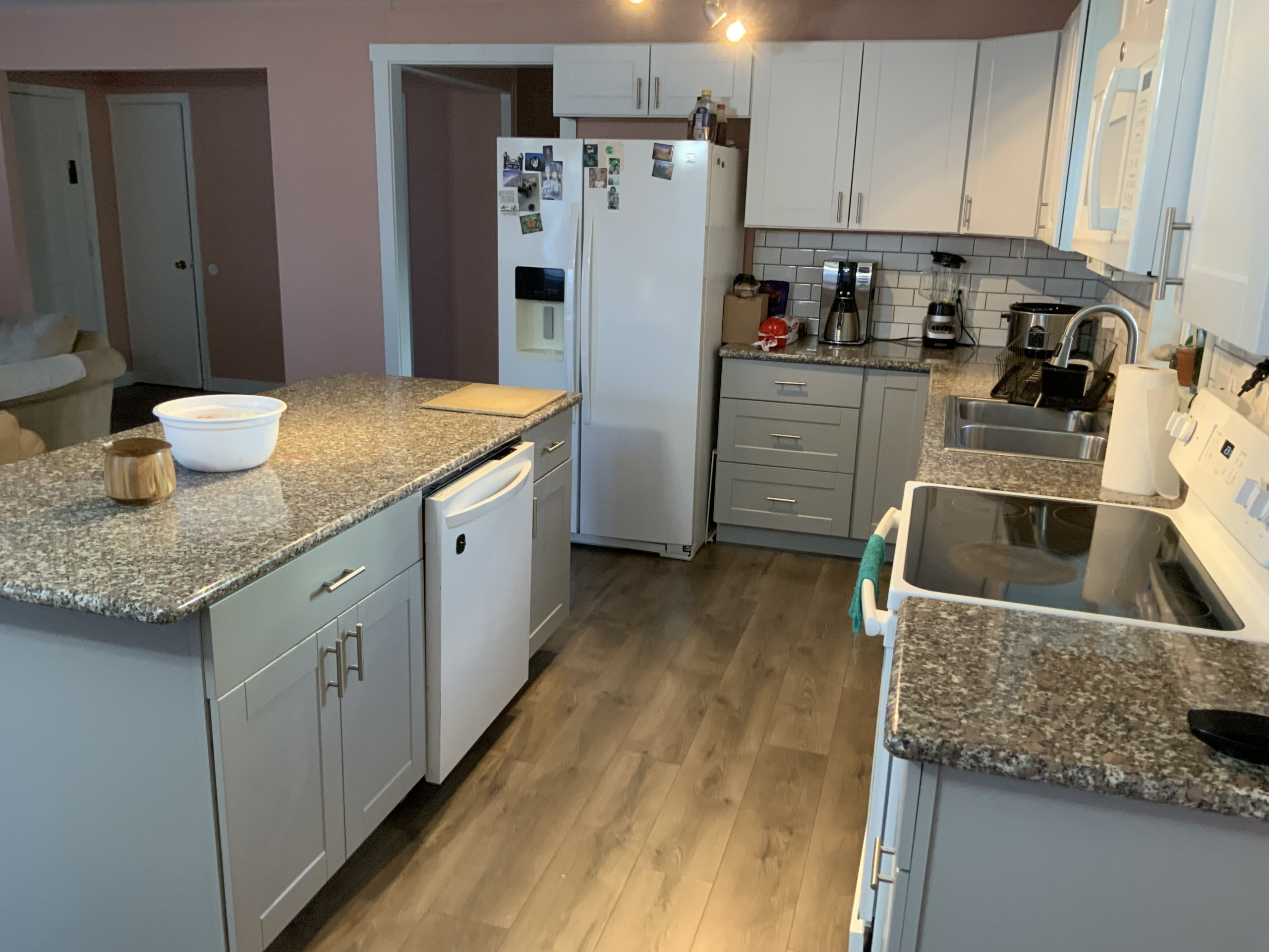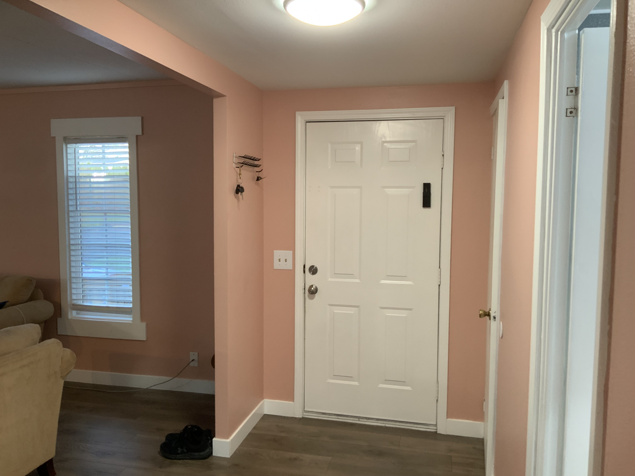 The open kitchen with an island features abundant storage and plenty of counter space—perfect for cooking, entertaining, or daily living. There are 2 large entry areas, 1 of which offers flexible space that could easily serve as a second living room, office, or hobby nook.