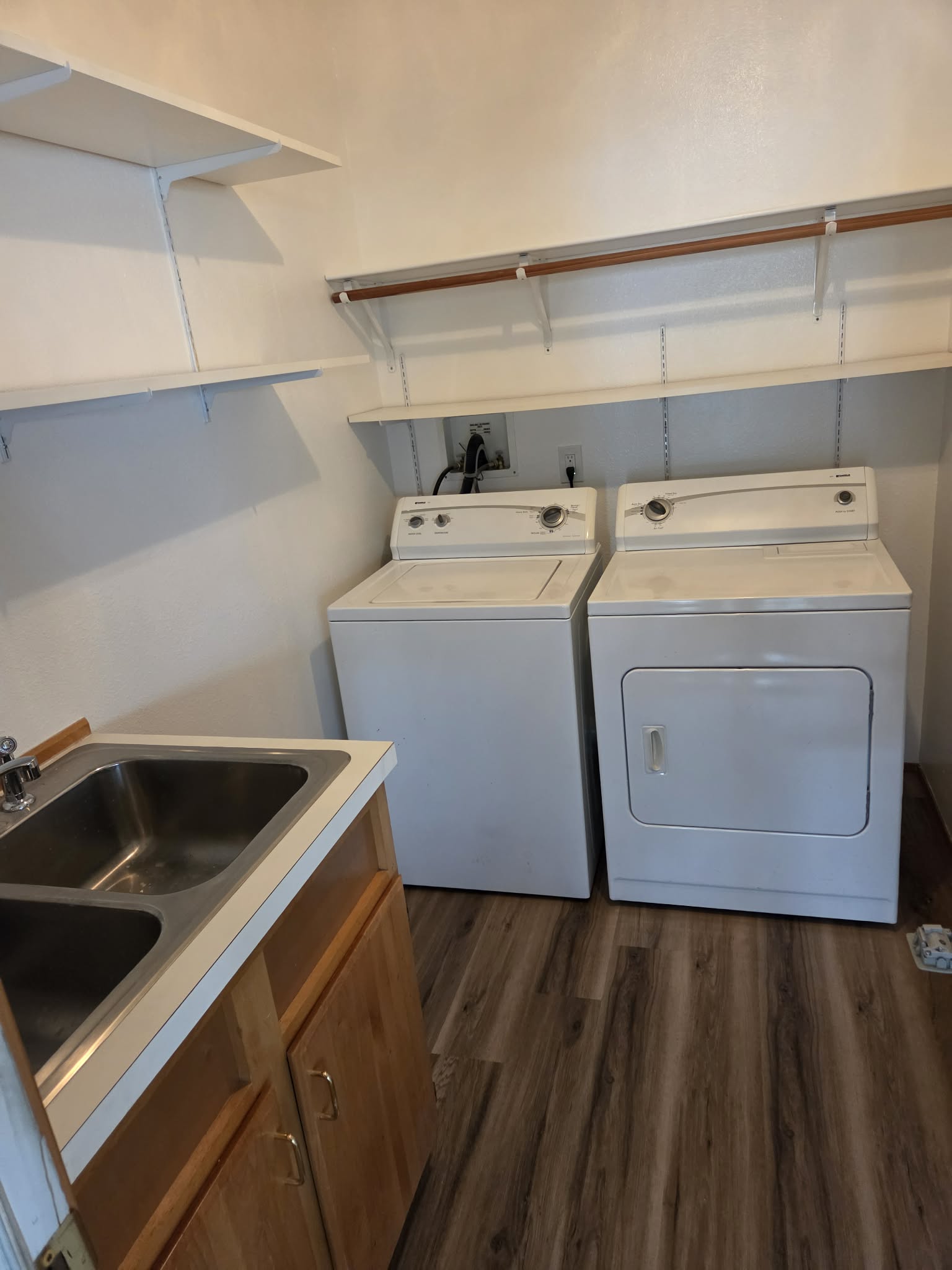 The spacious layout offers room for everything, featuring a large pantry, abundant storage, and a laundry room with a double utility sink, plus the washer and dryer are included. All appliances stay with the home. Both entrances are equipped with ramps for easy accessibility.