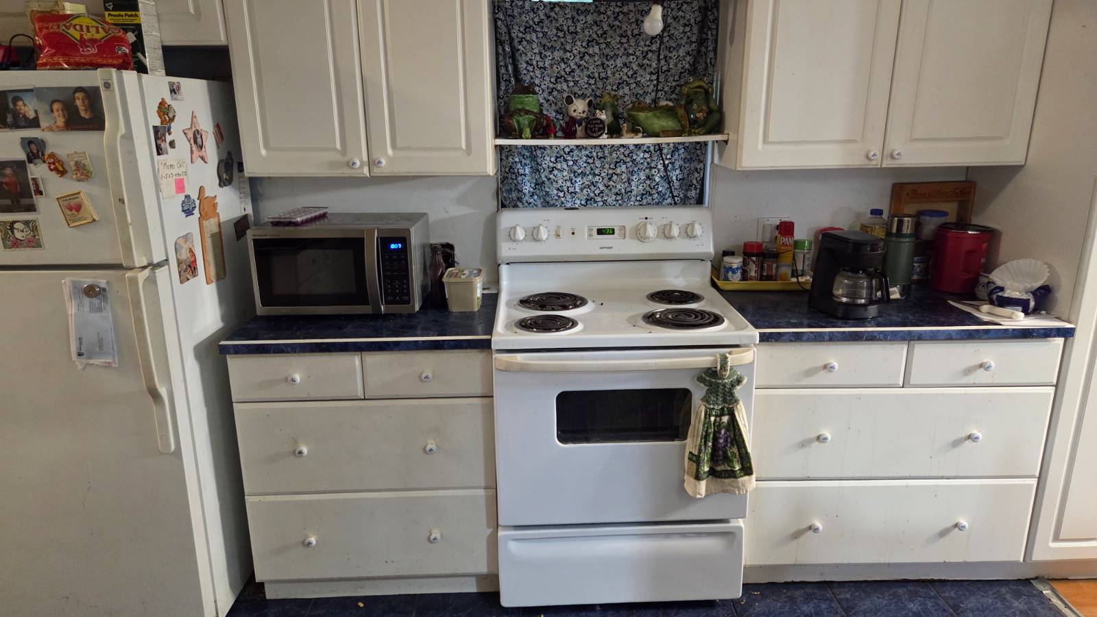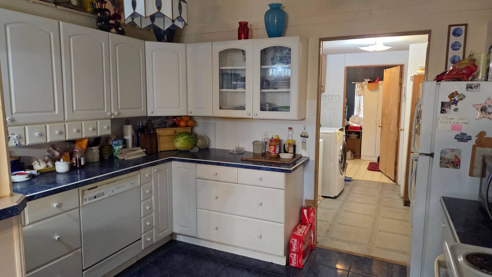 Step inside to a generous living area, a functional kitchen, and a large laundry/mudroom conveniently located near the back entrance and primary suite. The home has lots of potential, with the added bonus that any remaining items can stay for the buyer’s convenience.